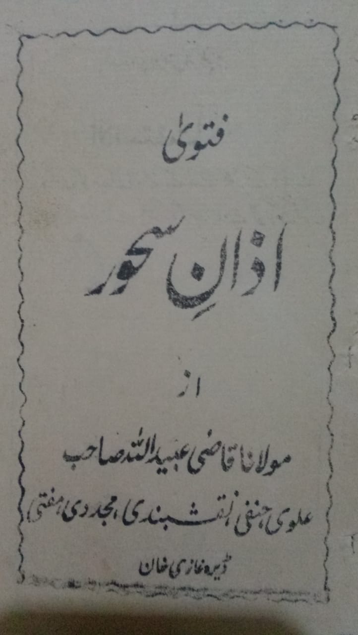 Fatwas of Mufti Qazi Ubaid Ullah رحمۃ اللہ علیہ
