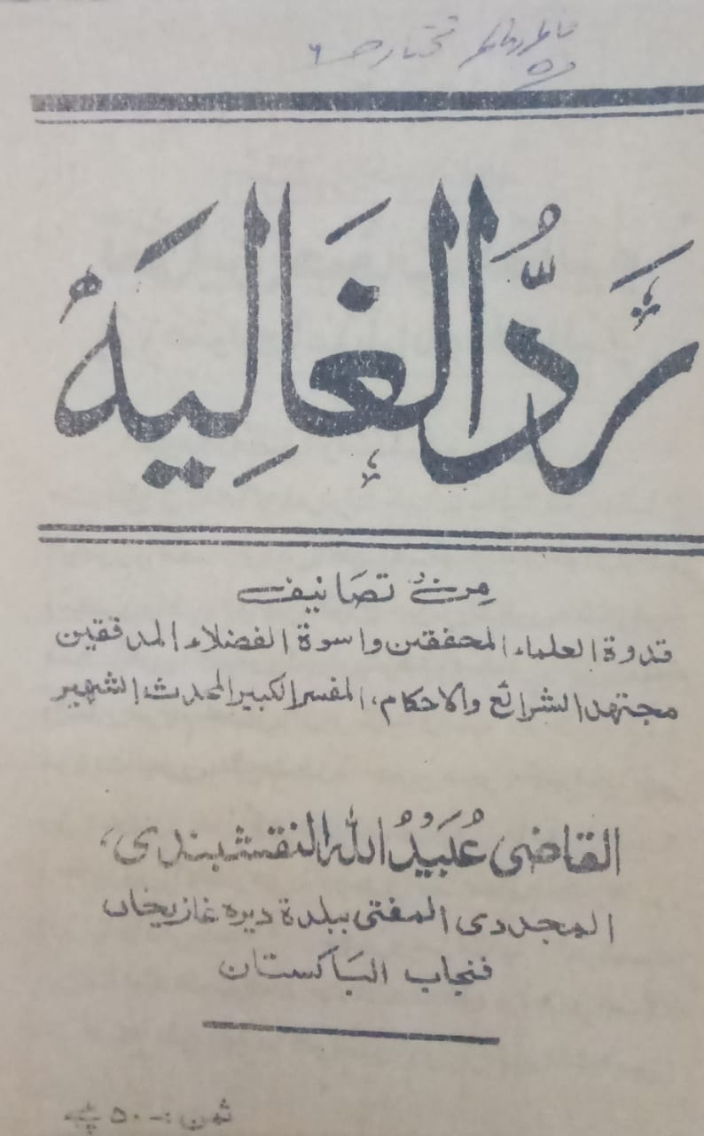 3. Critical Fatwa: These fatwas were those in which Mufti Qazi Obaidullah (Rahimahullah) criticized the fatwas of other scholars. For example, he criticized "Bahar-e-Shariat" and issued fatwas against scholars like Maulana Mufti Kifayatullah Dehlvi (Rahimahullah) and Maulana Qazi Muhammad Bakhsh Choti (Rahimahullah) from D.G. Khan.