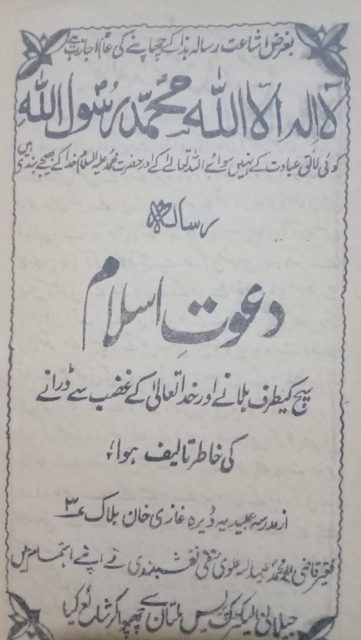 - In 1922, he re-established Darul Uloom Ubaidiya Naqshbandiya in D.G. Khan as a stronghold for spreading the message of Islam.