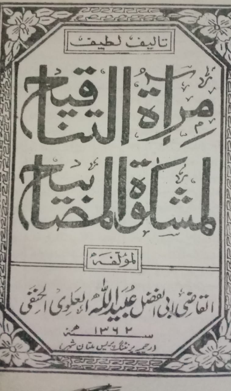 He was also associated with the Jamiat-ul-Ulama-e-Islam political movement. Hazrat Mufti Sahib was blessed to study under several renowned scholars such as Maulana Ustad Allah Dad رحمت اللہ علیہ, Maulana Abdullah Shah رحمت اللہ علیہ, Maulana Qadir Bakhsh Malkani رحمت اللہ علیہ, and others, and he was honored with Sanads in Hadith by Hazrat Sayyid Ata Allah Shah رحمت اللہ علیہ and Maulana Abdul Karim Shah Jampuri رحمت اللہ علیہ. His noble family included his brothers Qazi Abdul-ur-Rehman Alvi and Qazi Ahmad Ullah Alvi (Multanvi), his sons Qazi Qamar-u-din Alvi (late), Mufti Qazi Shamas-u-din Alvi Baqshbandi رحمت اللہ علیہ, and Qazi Fazal-u-din Alvi (late), as well as two daughters. His immense scholarly contribution includes the authorship of nearly one hundred Islamic books, leaving behind a luminous legacy of knowledge and devotion.