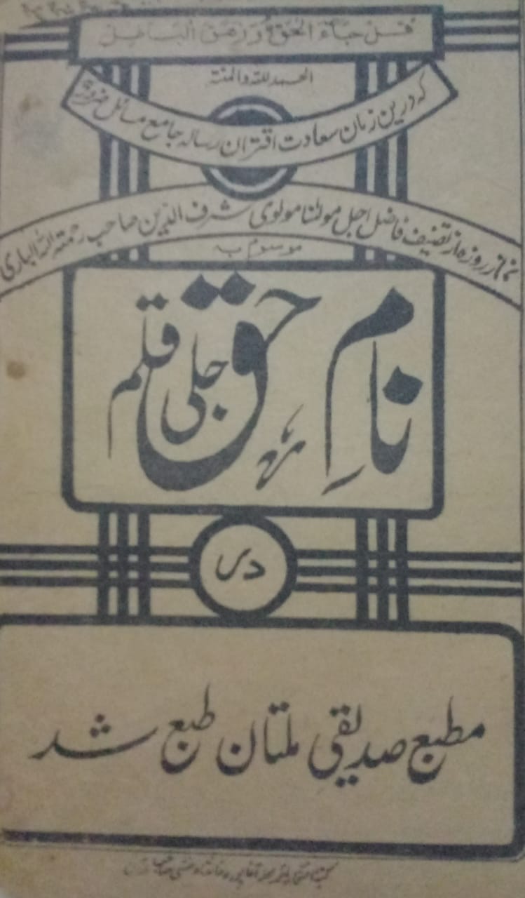 3. In the year 1932, Hazrat Maulana Imam Bakhsh Jampuri رحمۃ اللہ علیہ wrote a letter to Mufti Qazi Ubaidullah رحمۃ اللہ علیہ, asking him to refrain from declaring Mirza Ghulam Ahmad as a disbeliever. The text of the letter is as follows: "To the respected Hazrat Qazi Sahib, Salamun Alaikum wa Rahmatullahi wa Barakatuhu! The respected Hazrat Sahib Quds Sirruhul Aziz Shah رحمۃ اللہ علیہ has never called anyone a disbeliever, neither Mirza Sahib nor anyone else, nor is it his status, and nor do we call anyone a disbeliever. Your claim is incorrect; leave the claim in opposition to the Mirzai. Rather, Hazrat Sahib has called Mirza Sahib 'one of the righteous servants of Allah.' You are unaware of his way. What more can I say? From the humble Imam Bakhsh Fareedi Jampuri رحمۃ اللہ علیہ." Upon which Mufti Qazi Ubaidullah رحمۃ اللہ علیہ enlightened Maulana Imam Bakhsh Jampuri رحمۃ اللہ علیہ regarding Mirza Ghulam Ahmad being a liar and his false prophethood in the light of the Qur'an and Hadith.